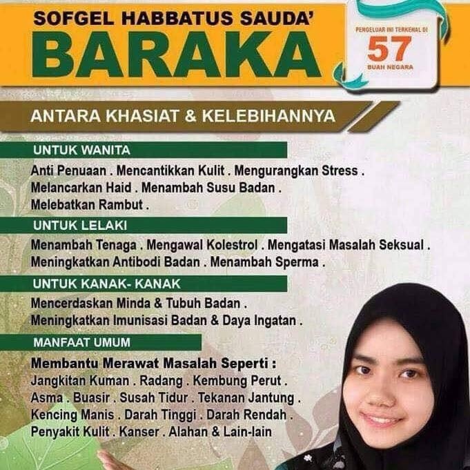 UsesK hasiat baraka habbatus sauda pharmaniaga. BARAKA HABBATUS SAUDA MURAH ps. Baraka Habbatus sauda adalah produk makanan tambahan yang membantu meningkatkan sistem ketahanan tubuh sekaligus menjanjikan tahap kesihatan yang baik bagi lelaki dan wanita.